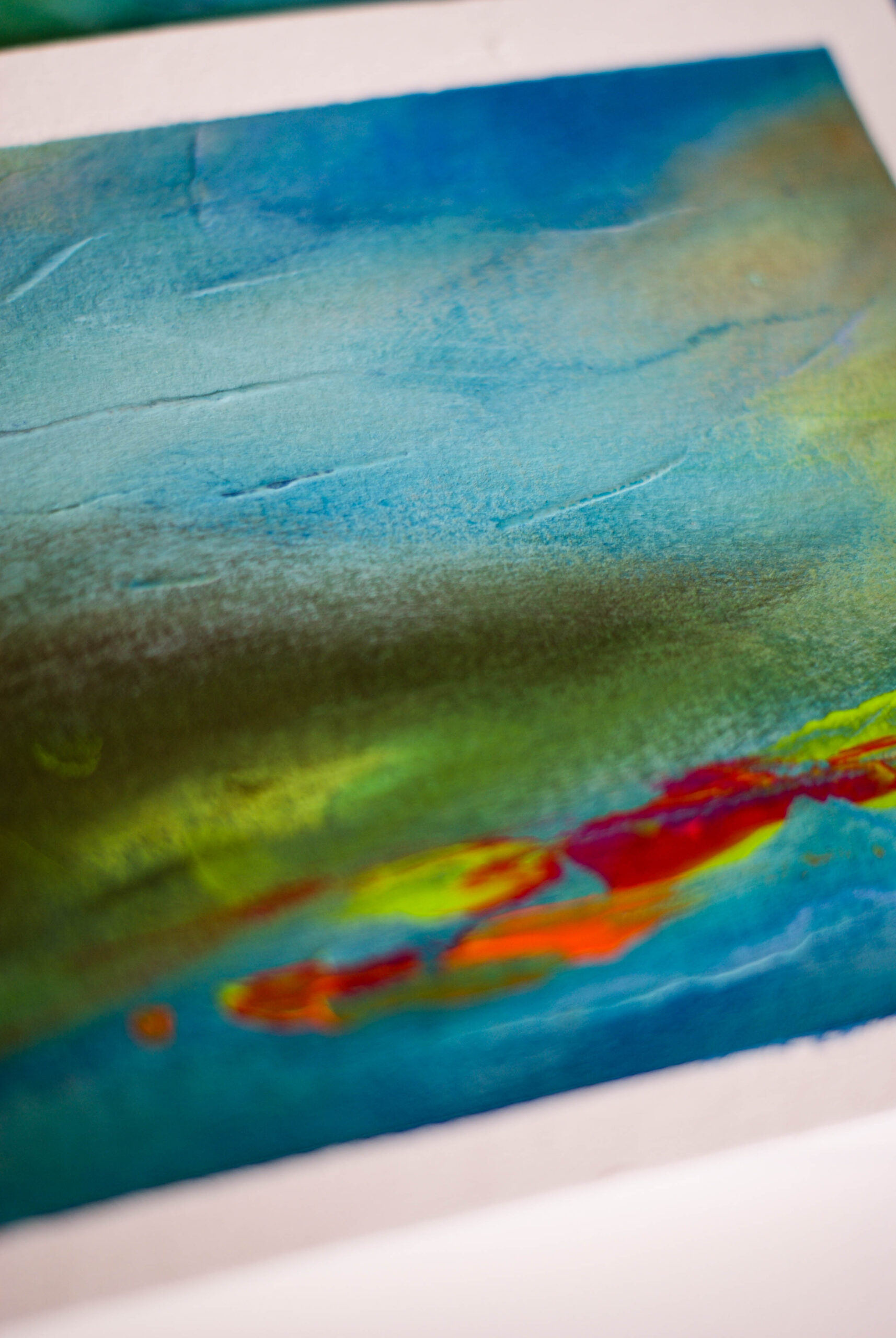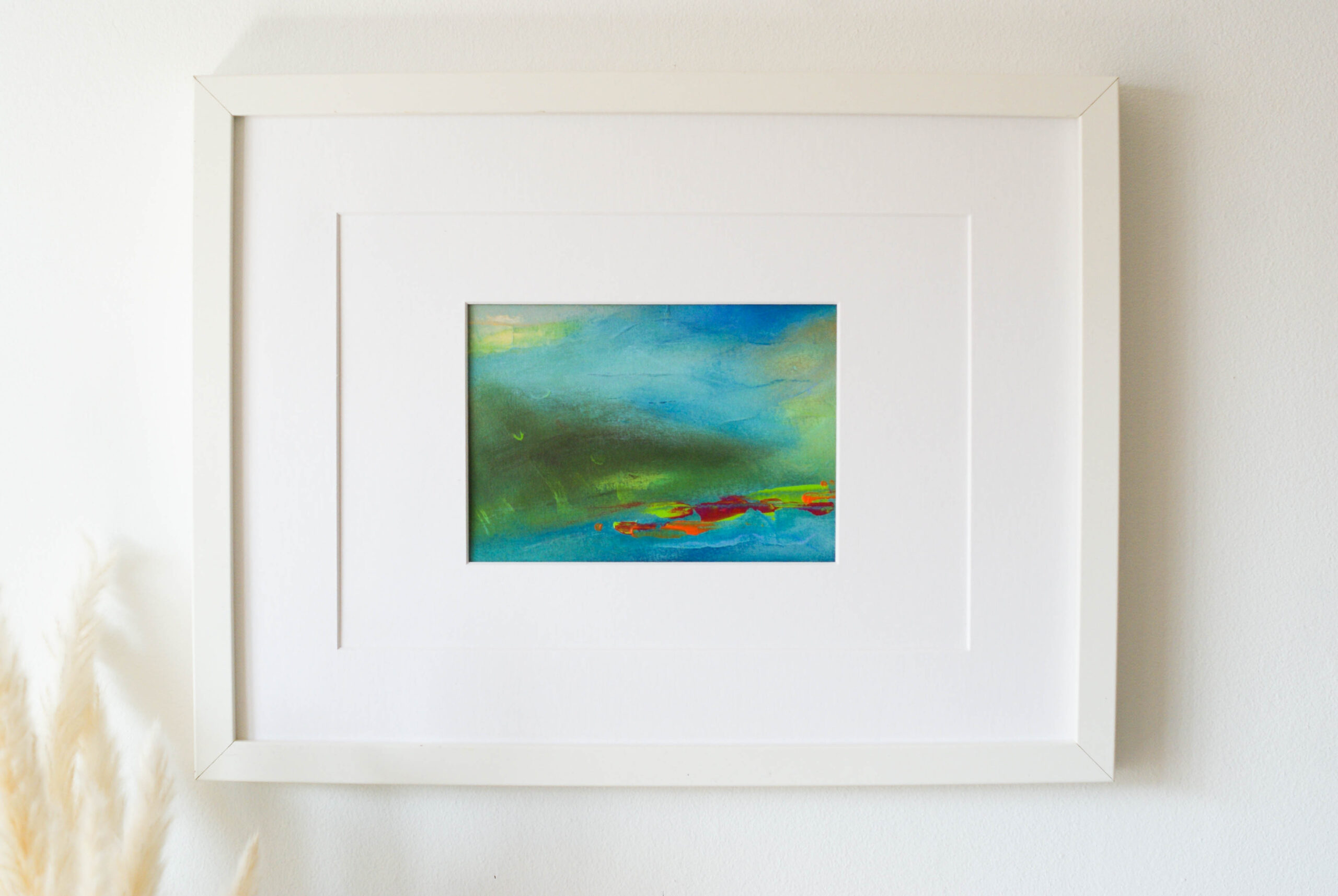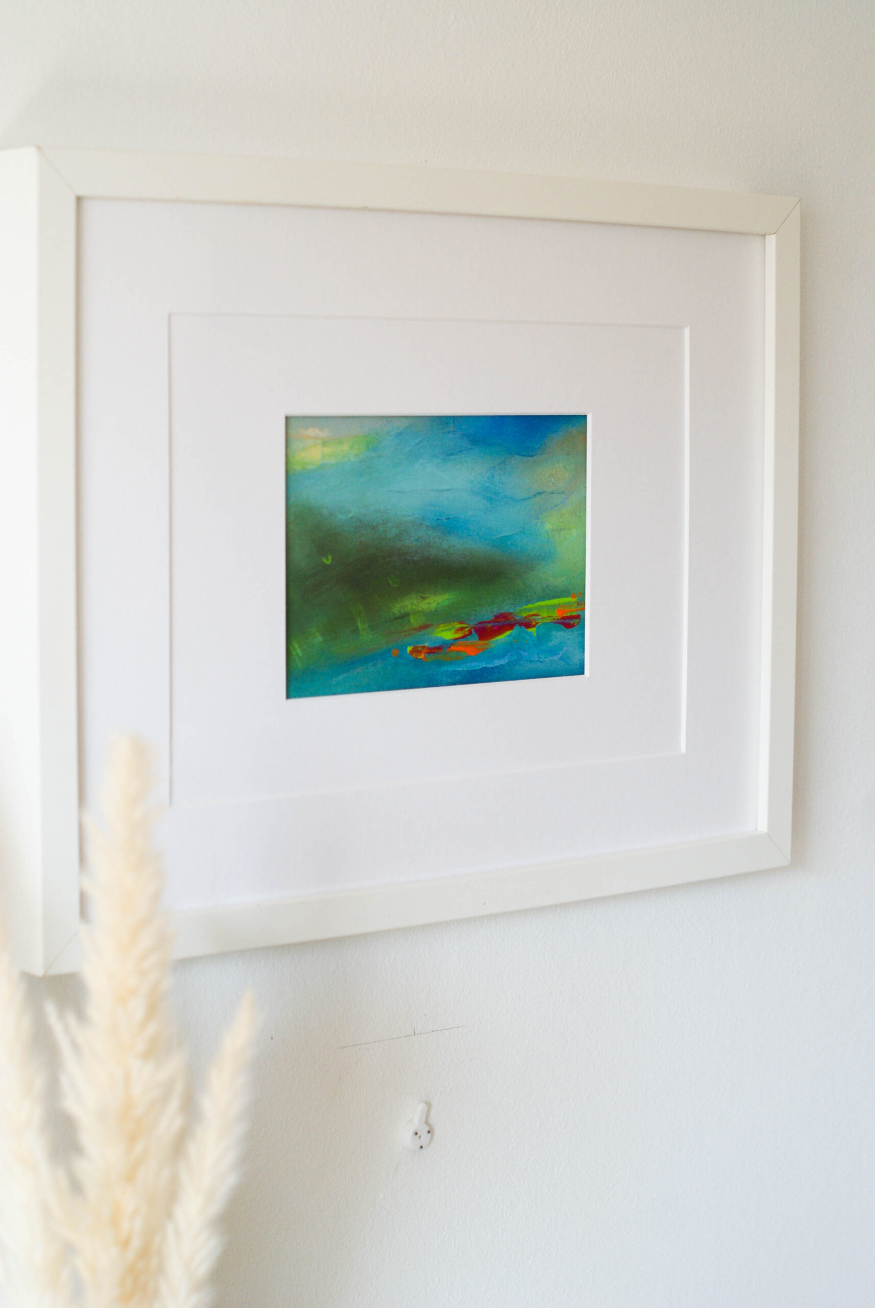 Obraz oryginalny, akryl na papierze, oprawiony w podwójne passe partout.
