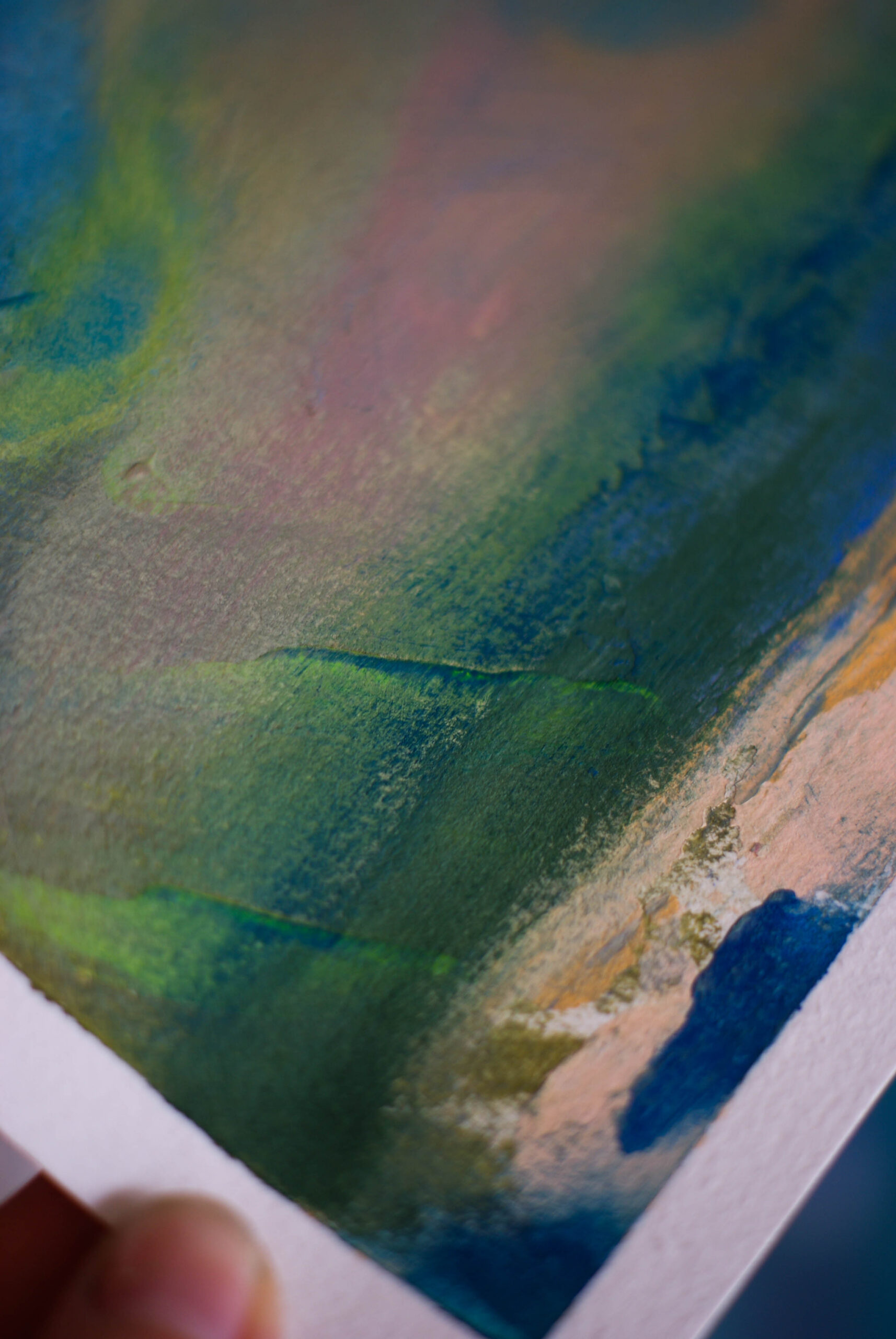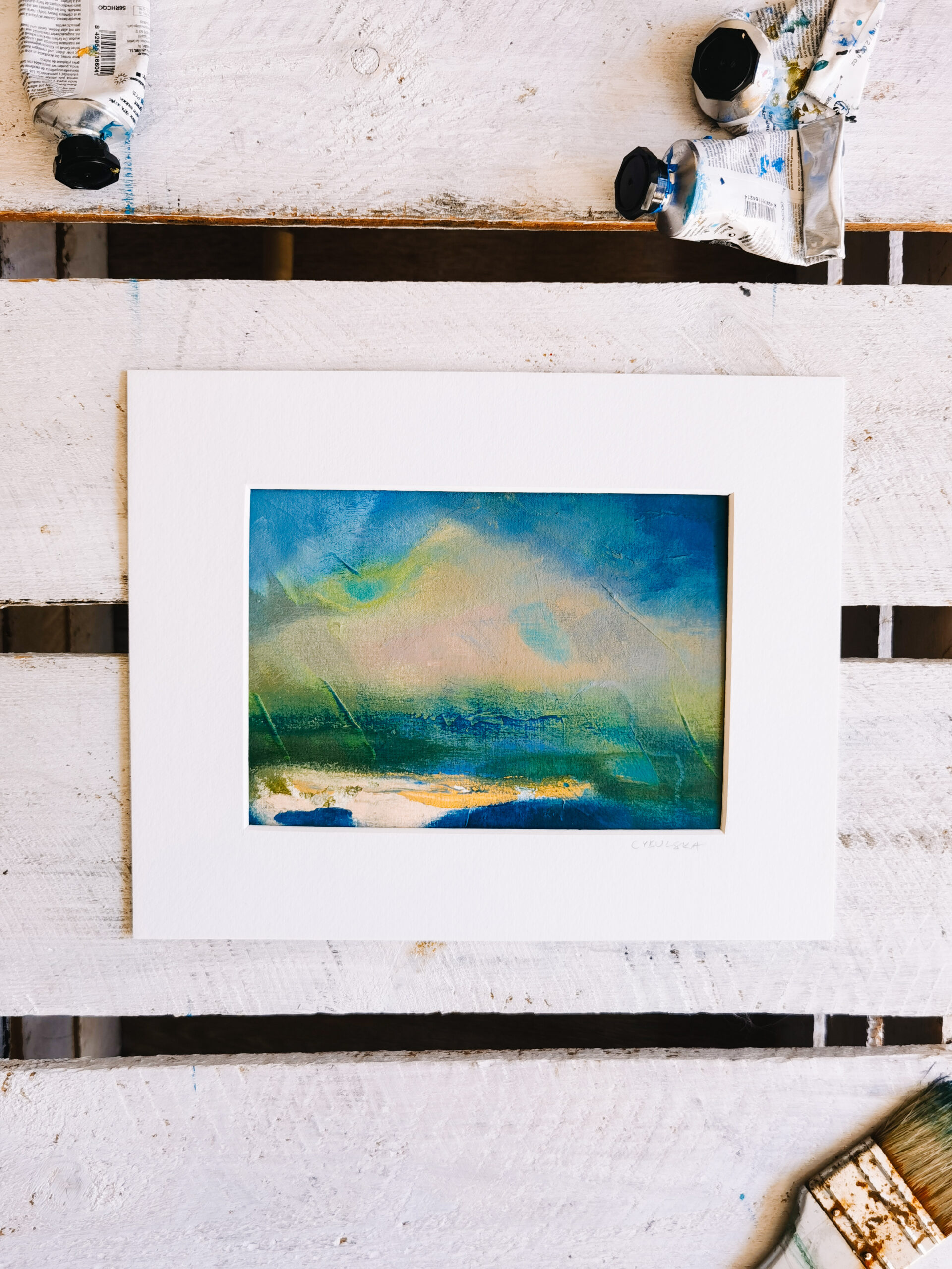 Obraz oryginalny, akryl na papierze, oprawiony w podwójne passe partout.